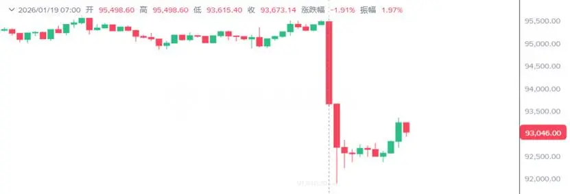 今天加密市场为何暴跌?作者:zhou, ChainCatcher北京时间 1 月 19 日上午 7 点,正值黄金现货开盘之际,其价格跳空高开,一度上涨约 2% 至 4690 美元上方,再创历史新高。与此同时,加密货币市场遭