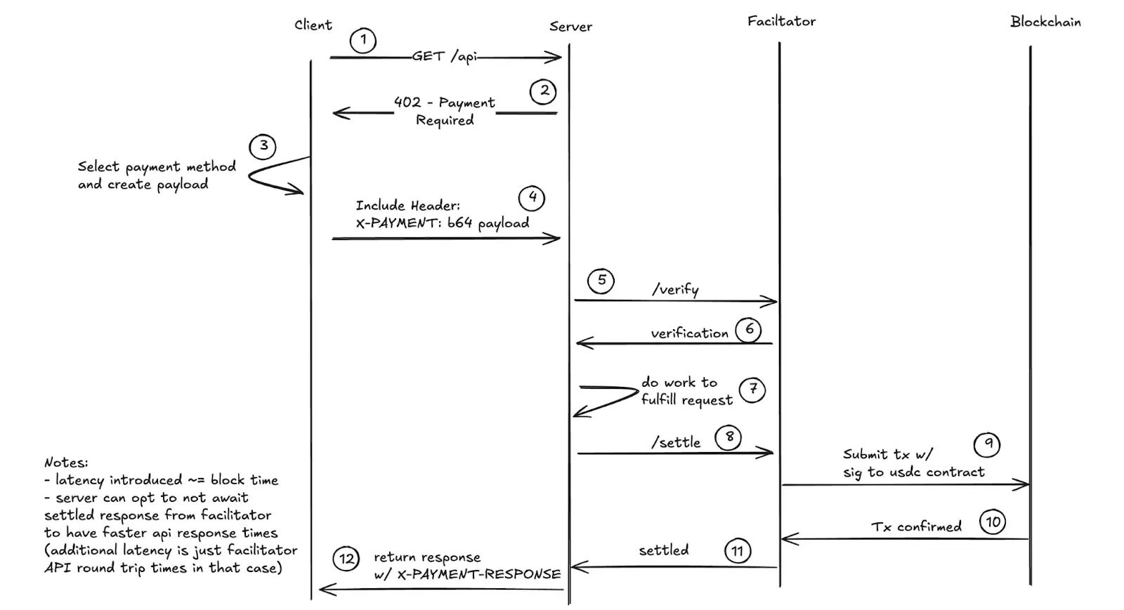 x402 协议:由 Coinbase 设计,核心目标在于实现机器对机器的“自主经济交易”。该协议通过复活 HTTP 402 状态码,将支付功能直接嵌入网络底层协议中,为 AI 代理之间的互动建立支付基础设施。这彻底解决了 AI 在传统金融体系中“无法持有信用卡的痛点”,使一个 AI 代理人在调用另一个 AI 的服务时,能自动发起微支付或续订。