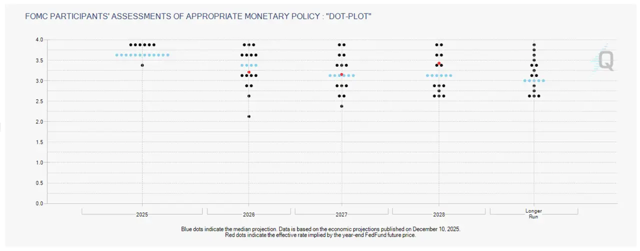 • 利率与流动性:利率决定了货币环境松紧,进而影响全球流动性和风险偏好。当利率下降或流动性扩张时,投资者更愿意配置高风险资产,资金可能从低收益债券等转向股票、加密资产等领域。反之,高利率环境下无风险利率上升,削弱了投资者配置加密资产的动力。超低利率的宽松环境在2020-2021年助推了风险资产热潮;而2022年起快速加息至5%以上使流动性急剧收紧,令加密市场承压。2024年下半年美联储开启降息周期,2025年底利率降至3.5-3.75%区间,市场预计2026年利率将进一步缓降至约3.25%。利率和流动性可以说是近年影响加密市场最重量级的宏观因素之一。