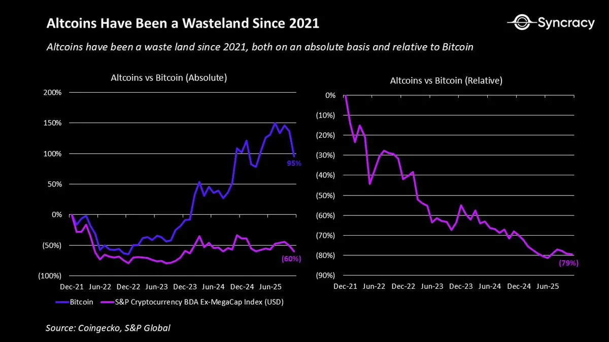 然而,一线曙光在于,上述问题已被广泛理解,且价格已对此做出了反应。如今,除了比特币,很少有加密原住民愿意再去谈论其他资产的长期基本面。在经历了四年的阵痛后,该资产类别现在具备了再次带来上行惊喜的必要条件。