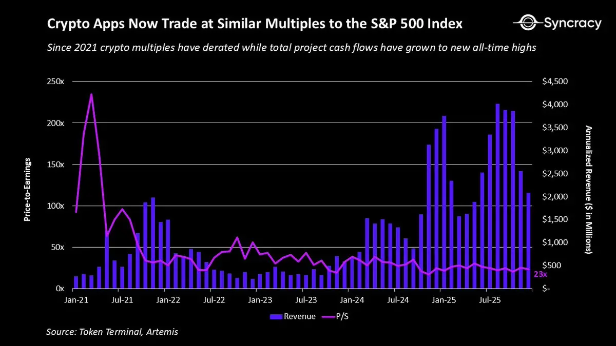 同时,市场正逐渐达成共识,回归到一个简单且经受时间考验的原则:99.9% 的资产都需要产生现金流,只有像 BTC 和 ETH 这样的价值存储资产是极少数例外。随着更多基本面投资者进入,这些框架将得到强化,市场理性也会随时间推移而增强。