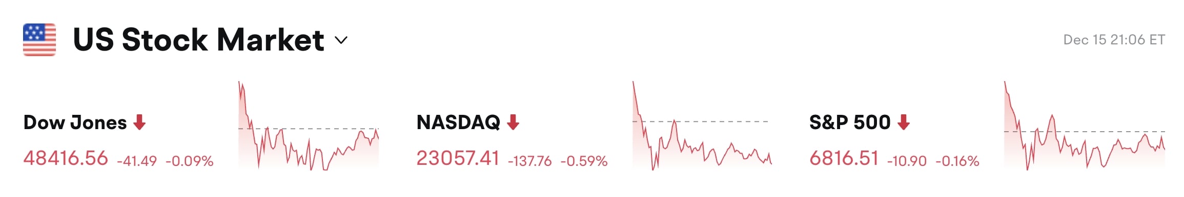 2、美股:道指-0.09%,标普500指数-0.16%,纳斯达克综合指数-0.59%。此外,英伟达(NVDA)涨0.73%,Circle(CRCL)-9.6%,Strategy(MSTR)-8.14%。