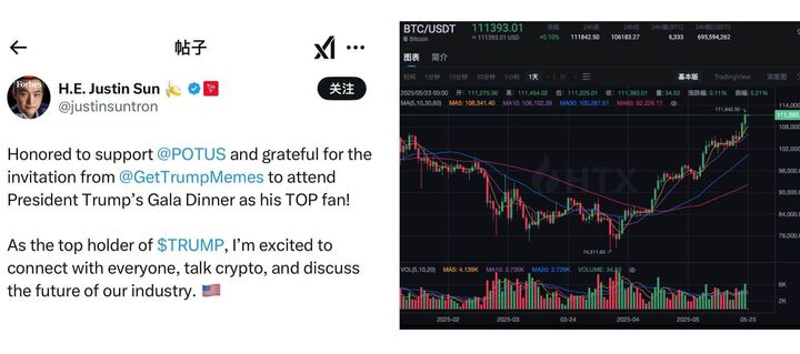 2010年5月22日,程序员Laszlo Hanyecz用10000枚比特币买下两张披萨,完成了历史上第一笔以比特币购买实体物品的交易,从此,“比特币披萨节”成为了加密社区每年庆祝的盛大节日;15年后,5月22日的象征意义得到了完美传承:2025年的这一天,美国总统特朗普将前220位$TRUMP代币持有者汇聚一堂,举办盛大晚宴,并特别邀请前25名持有者参加其私人招待会和白宫VIP之旅。巧合的是,比特币也在这一天首次突破11万美元,创下历史新高。