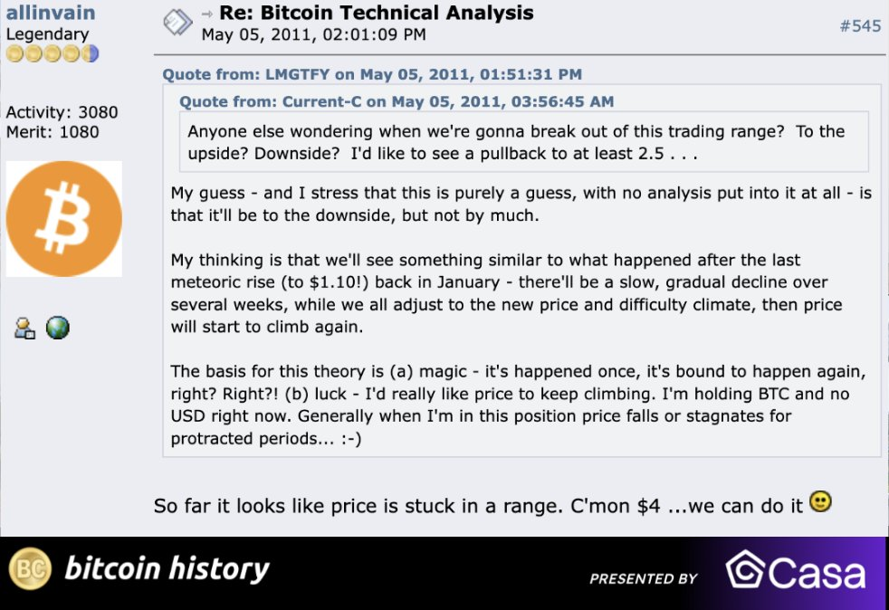 Allinvain很快成为比特币鲸鱼,拥有超过2.5万枚比特币。2011年初,Allinvain为比特币价格上涨而欢呼,当时比特币价格飙升至30美元的高位。这是第一次比特币泡沫。Allinvain当时拥有价值50万美元的“魔法”货币。