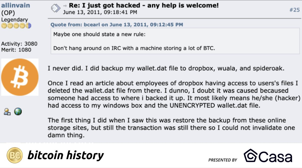 时至今日,Allinvain的故事依然在警醒人们比特币安全的重要性。