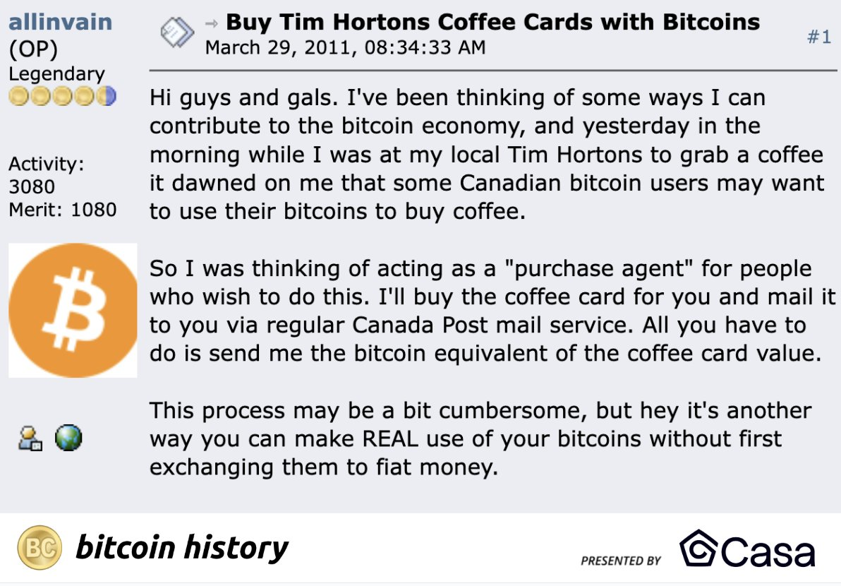 但Allinvain研究得越多,就越感到惊奇。Allinvain希望帮助Bitcoin,并开始推动用比特币(BTC)购买和出售真实商品。