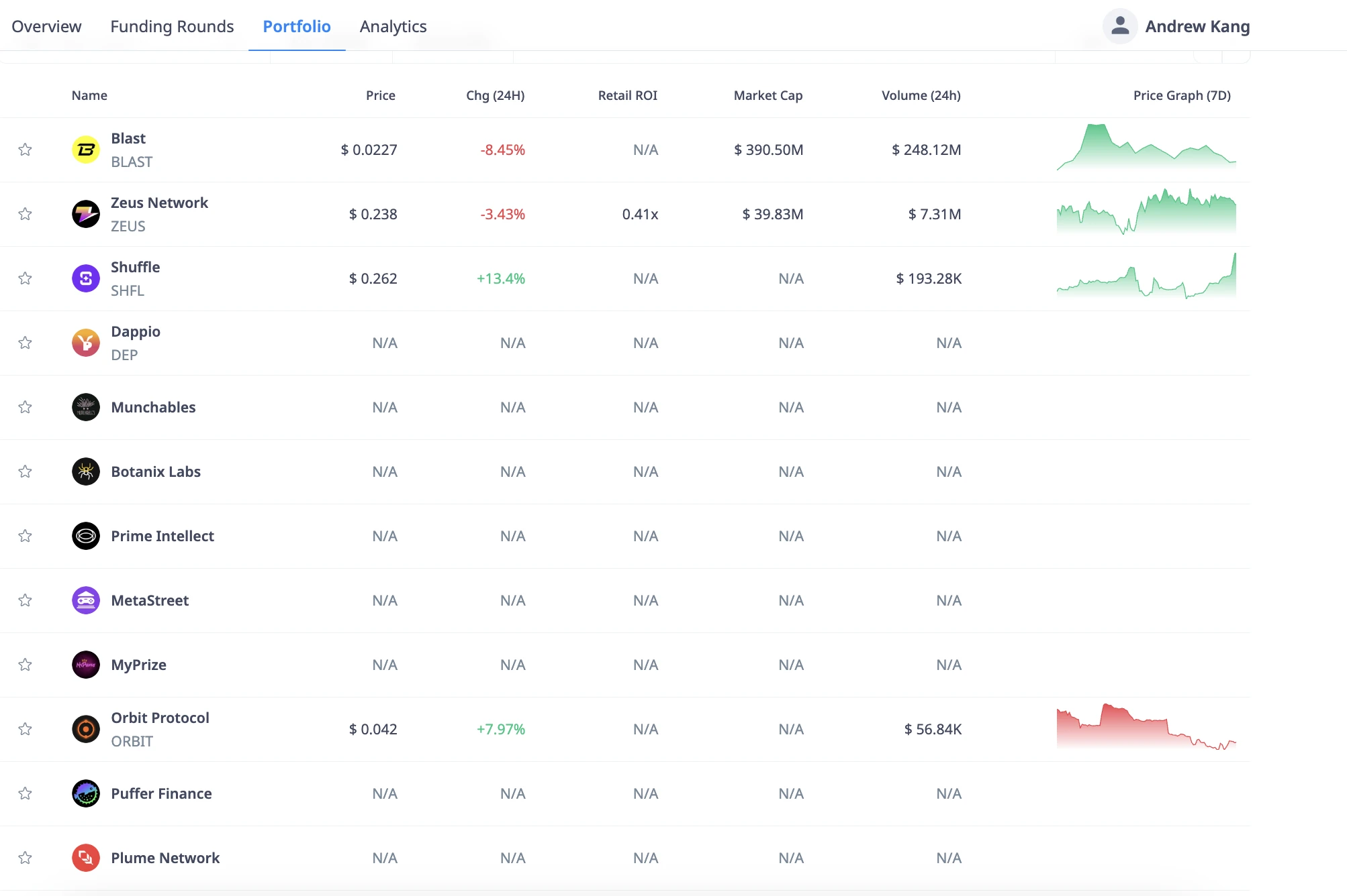 根据@CryptoRank_io网站数据,Kang 最新且相当知名的投资是 @Blast_L2 和 @puffer_finance,除此以外,他还投资了NFT抵押借贷平台MetaStreet、 Solana 生态跨链通信网络 Zeus Network(且为领投机构)、加密游戏博彩平台 Shuffle、Blast 生态借贷项目 Orbit Protocol、RWA Layer 2 网络 Plume Network 等一众项目。