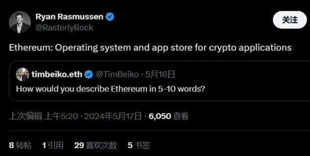 Ryan:事实上,这实际上是比特币至上主义者对以太坊的常见批评,我觉得很有趣。他们说以太坊不断改变其叙事。