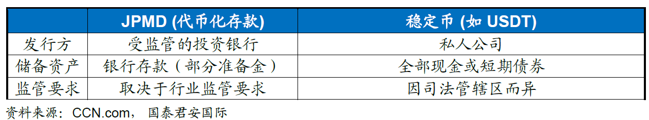 与 USDC 或 USDT 等稳定币不同,JPMD 是: