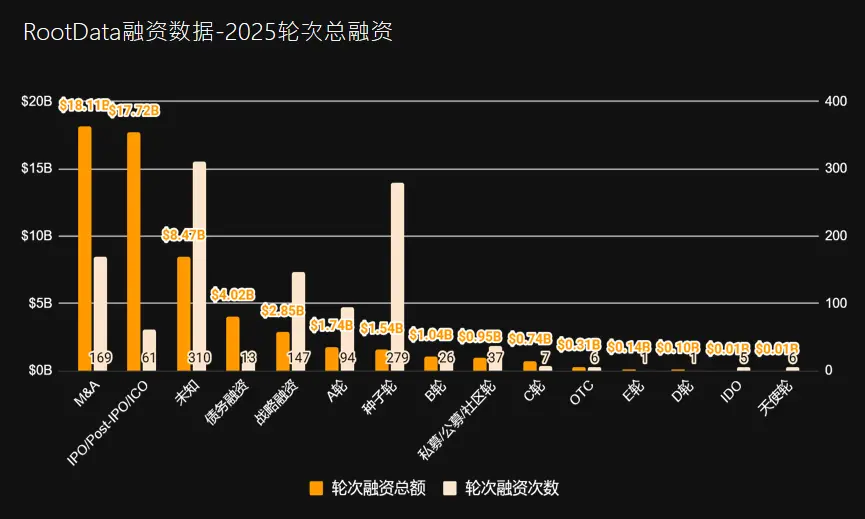 *Rootdata网站统计并未计入并购/Post-IPO等数据, 可能与此数据有偏差