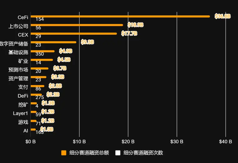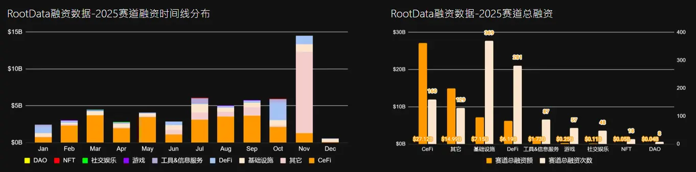 2025年赛道融资极端分化, CeFi独占近半壁江山, 而Web3原生赛道集体边缘化: