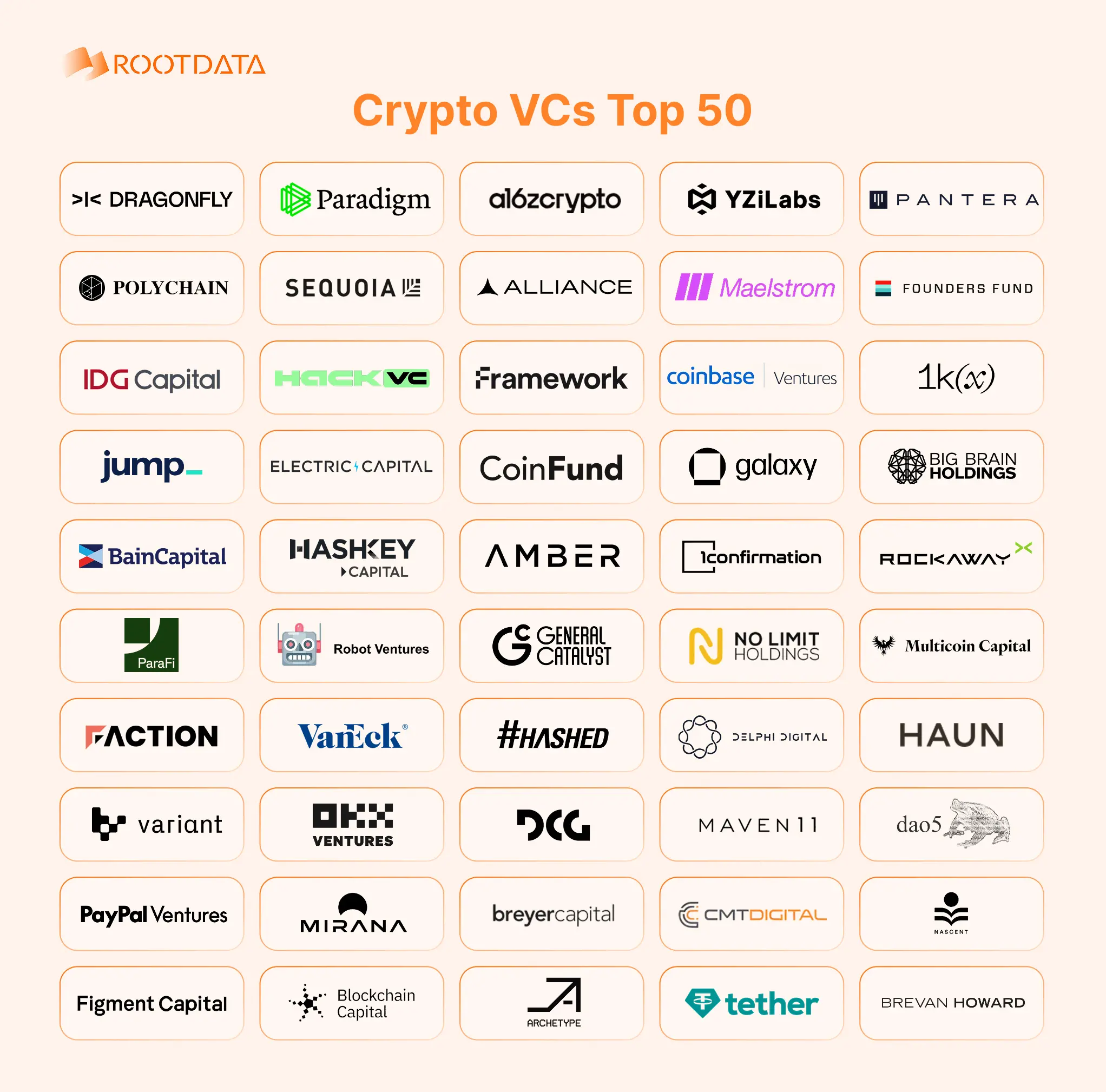 RootData于2025.10.1评出的 Top50 VCs 榜单