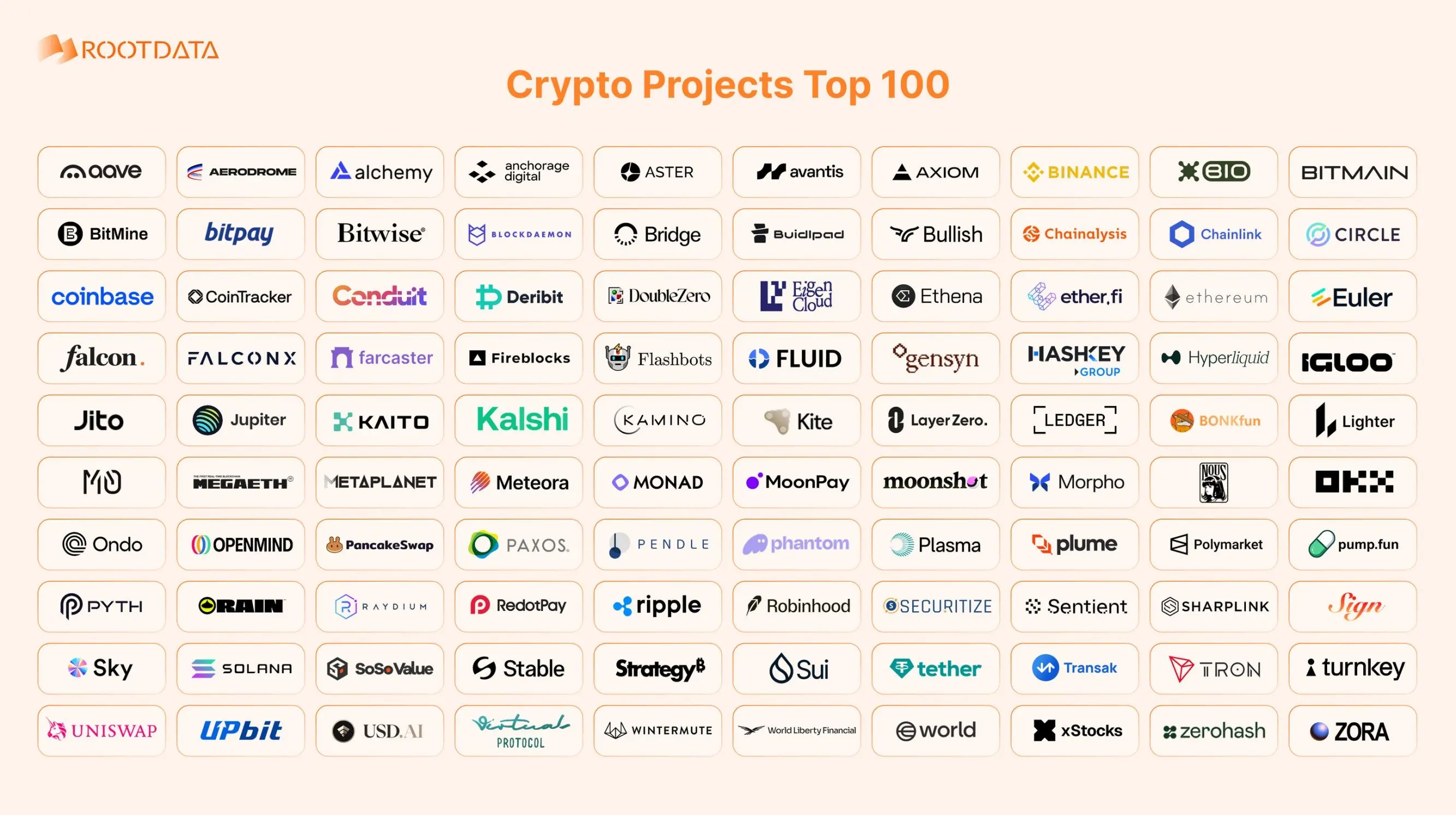 RootData于2025.10.1评出的 Top100 项目榜单