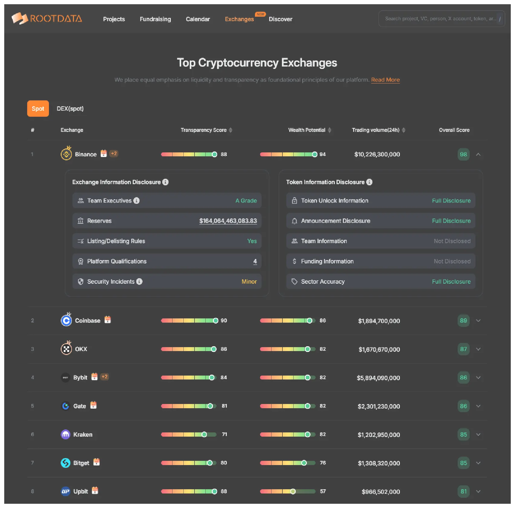 RootData 推出的交易所榜单,旨在携手交易所,共筑合规可信的交易生态。