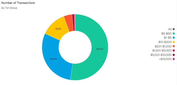 比较有趣的是,EtherFi Cash业务自推出以来,得到了市场的迎合。据Dune数据,该业务已累计消费金额约1.97亿美元,共完成236万笔交易,累计发放返现约775万美元,活跃卡片数量达到4.69万张。整体来看,交易频次与活跃卡数表明该产品已进入实际使用阶段,而返现规模相对可控,说明当前激励更多起到用户获取与留存作用,也反映出其支付场景正处于稳步放量的阶段。值得留意的是从使用情况看,持卡用户都是小额试探性的消费为主,交易频次较多的金额集中在6—50美元左右。