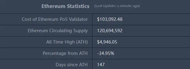 ETHUSD :现价3,220美元,历史最高价4,946.05美元,距最高价跌幅约34.95%