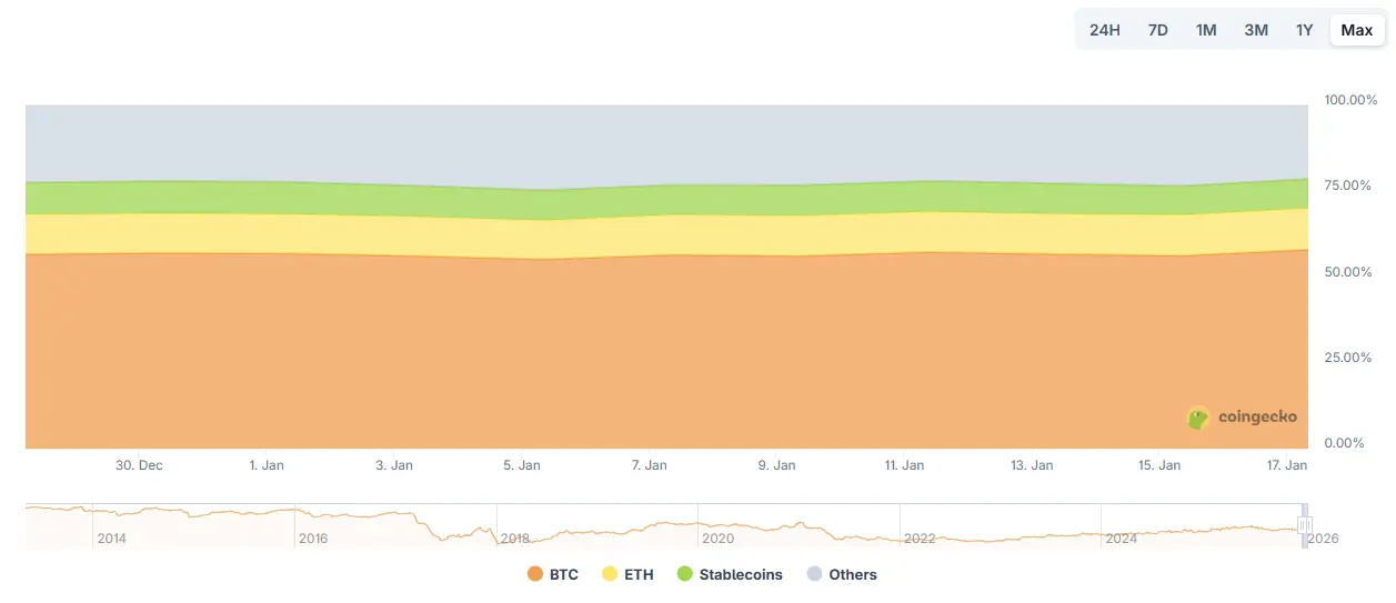 数据来源:Cryptorank,https://cryptorank.io/charts/btc-dominance