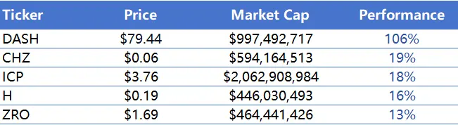 1.本周涨幅前五的VC币和Meme币