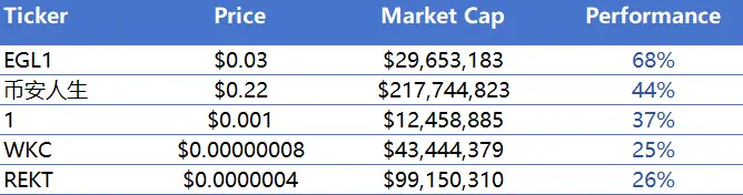 过去一周内涨幅前五的Meme币