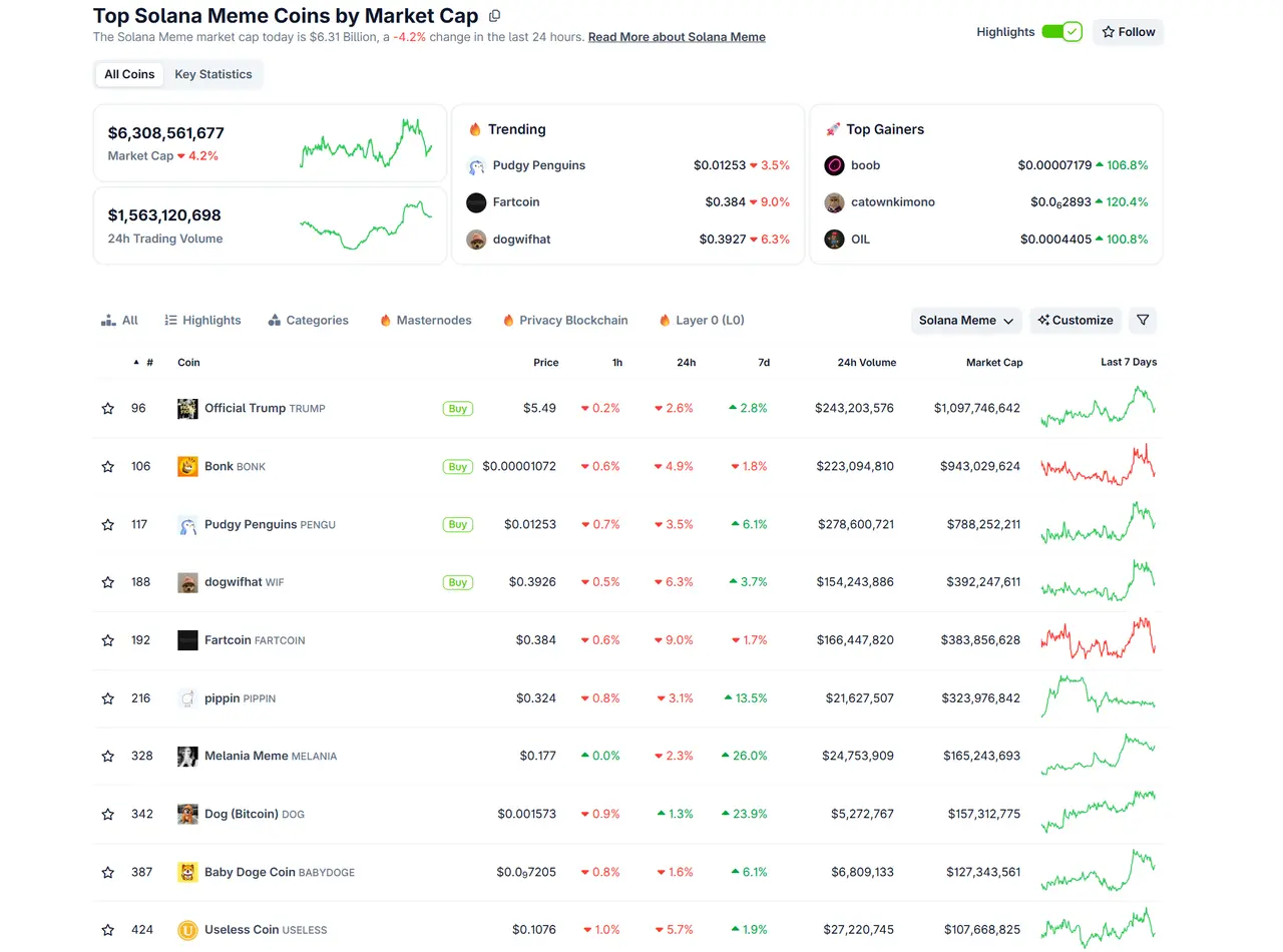 来源:https://www.coingecko.com/en/categories/solana-meme-coins