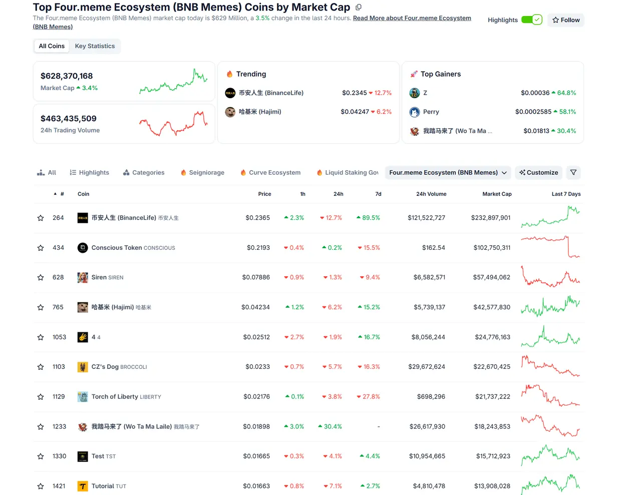 来源:https://www.coingecko.com/en/categories/four-meme-ecosystem