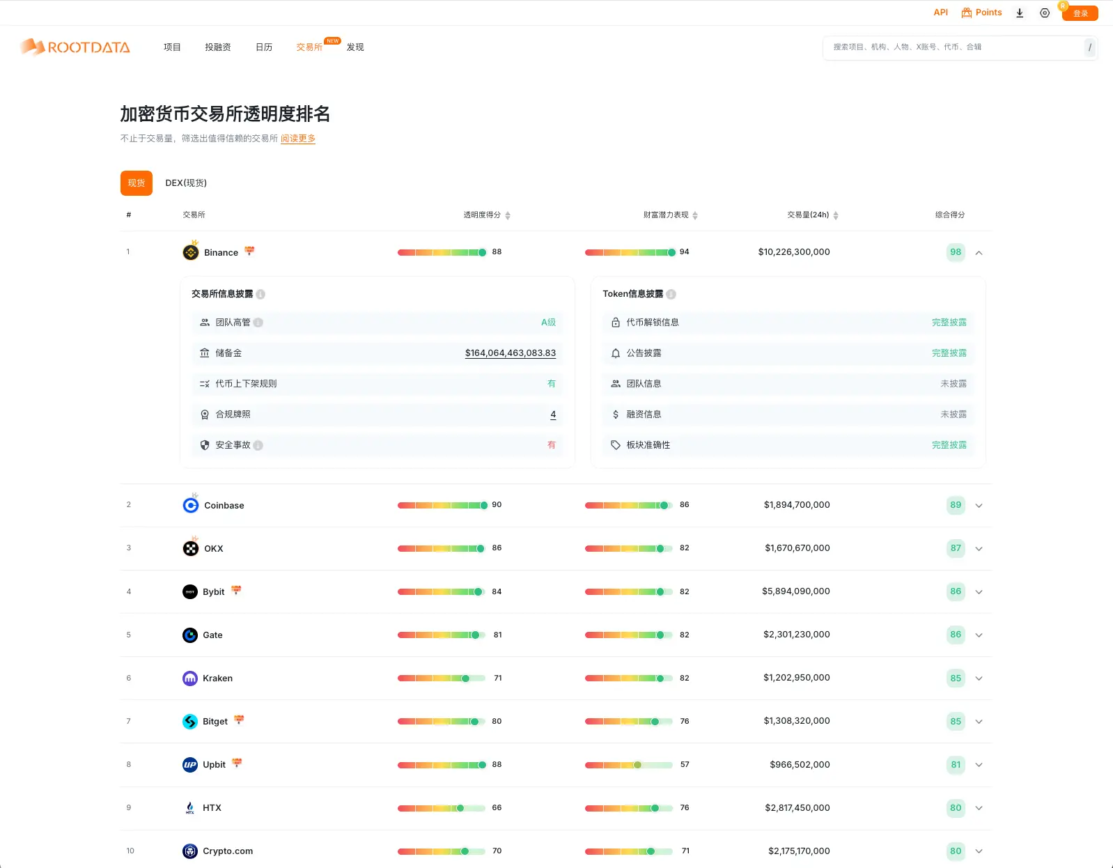 RootData 交易所透明度排行榜突破传统“唯交易量论”的局限