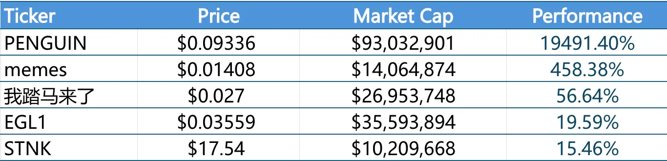过去一周内涨幅前五的Meme币