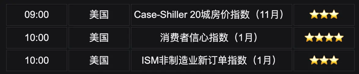 - 美联储利率决定:1月28日 - 关注是否维持不变及前瞻指引。