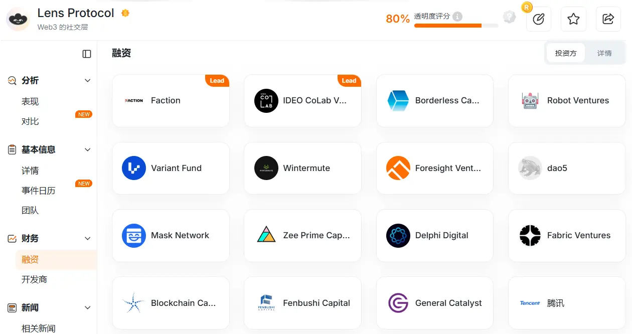 在资本层面,根据 RootData 数据,Lens Protocol 累计募资已超 4600 万美元,投资方涵盖腾讯、Robot Ventures、Wintermute、Circle Ventures 及 Variant Fund 等,此前曾传出计划以 5 亿美元估值进行新一轮融资。