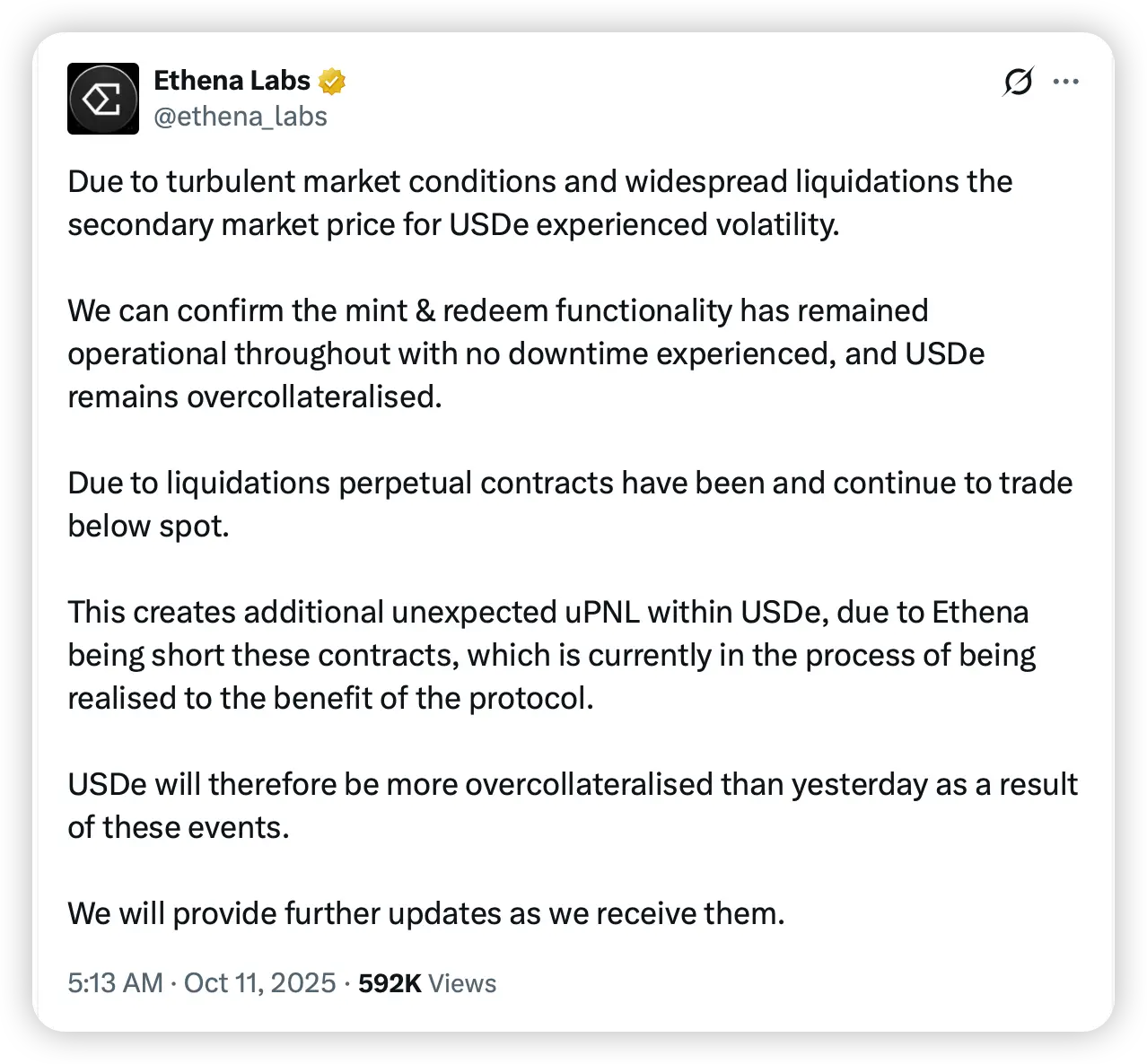 10·11 USDe 脱锚始末:一堂价值 190 亿美元的 Crypto 金融工程课