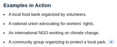 当人们正面谈论「公民社会」—— 即社会中既非盈利导向、也非政府属性的部分时,总会将其描述为「由大量独立机构构成,且各自专注于不同领域」。若让人工智能解释「公民社会」,它给出的例子也大抵如此。