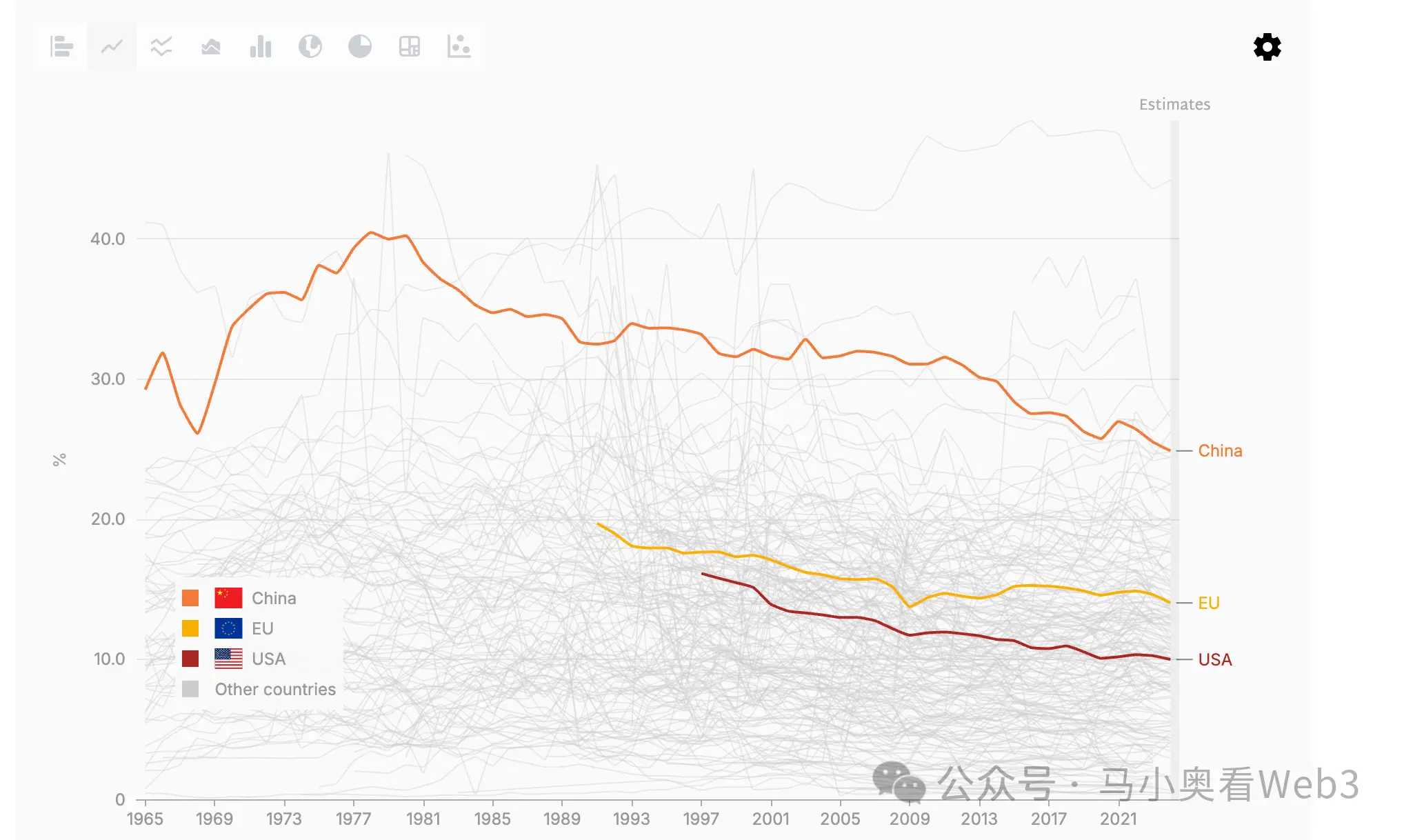 当然汇率风险也在于如何解决与欧盟的政治摩擦。由于欧盟各国大多数为已开发国家,且制造业在 GDP 占比远比美国来的更高(欧洲制造业占 GDP 比例达到 15%,而美国则为不到 10%),这就意味着欧洲普通民众的主要收入中工资收入,相对于投资带来的资本利得的占比更高。在过去一段时间內,欧盟由于失去了俄罗斯廉价的能源供给,导致成本攀升,制造业受到了不小的影响,特别是由于中国的产业升级,对欧洲的支柱型产业之一,汽车产品产生了极大冲击。这就意味着欧洲整体产业利润的下降,企业利润的下降带来的两个影响是政府税收的下降,以及工资增速的放缓。前者也会通过财政吃紧,进而影响欧洲原有的高福利的维持。这两者都将使得居民的财富效应降低,进而影响消费。而投资方面,由于缺乏 AI 方面的优质标的,欧洲失去了在 AI 领域的资本竞争能力,欧洲资本大都流出到美国的 AI 市场中,以争取更高的预期回报。因此投资方面也不容乐观。所以在这个基础上,净出口对于经济的影响就会被放大,因此欧洲各国政府对贸易逆差的态度也更为激烈。