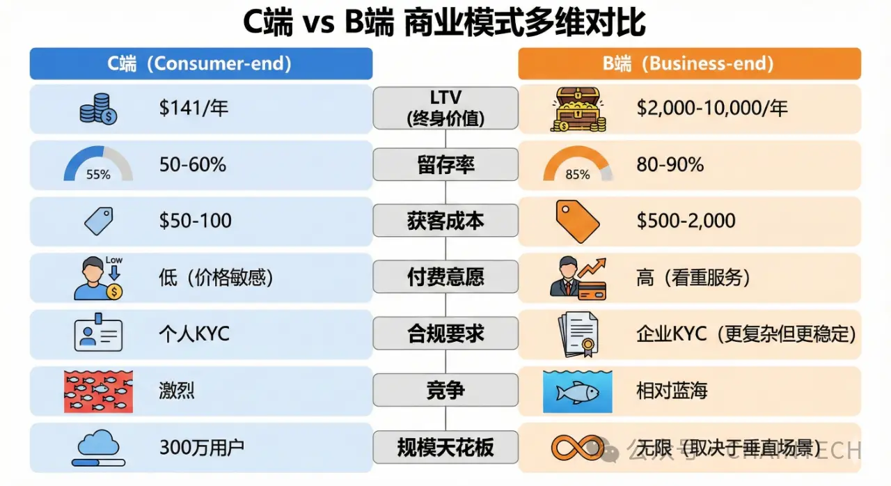 - 传统银行不服务他们:开户难、KYC麻烦、手续费高、到账慢