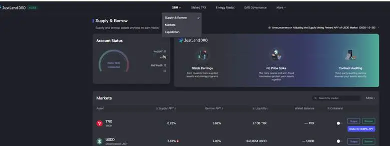 作为波场 TRON 生态金融设施的核心支柱,JustLend DAO通过持续的功能整合与战略升级,已实现从借贷协议到生态价值枢纽的跨越式发展,构建集资产借贷增值、质押服务、Gas成本优化等于一体的全链路去中心化金融解决方案。