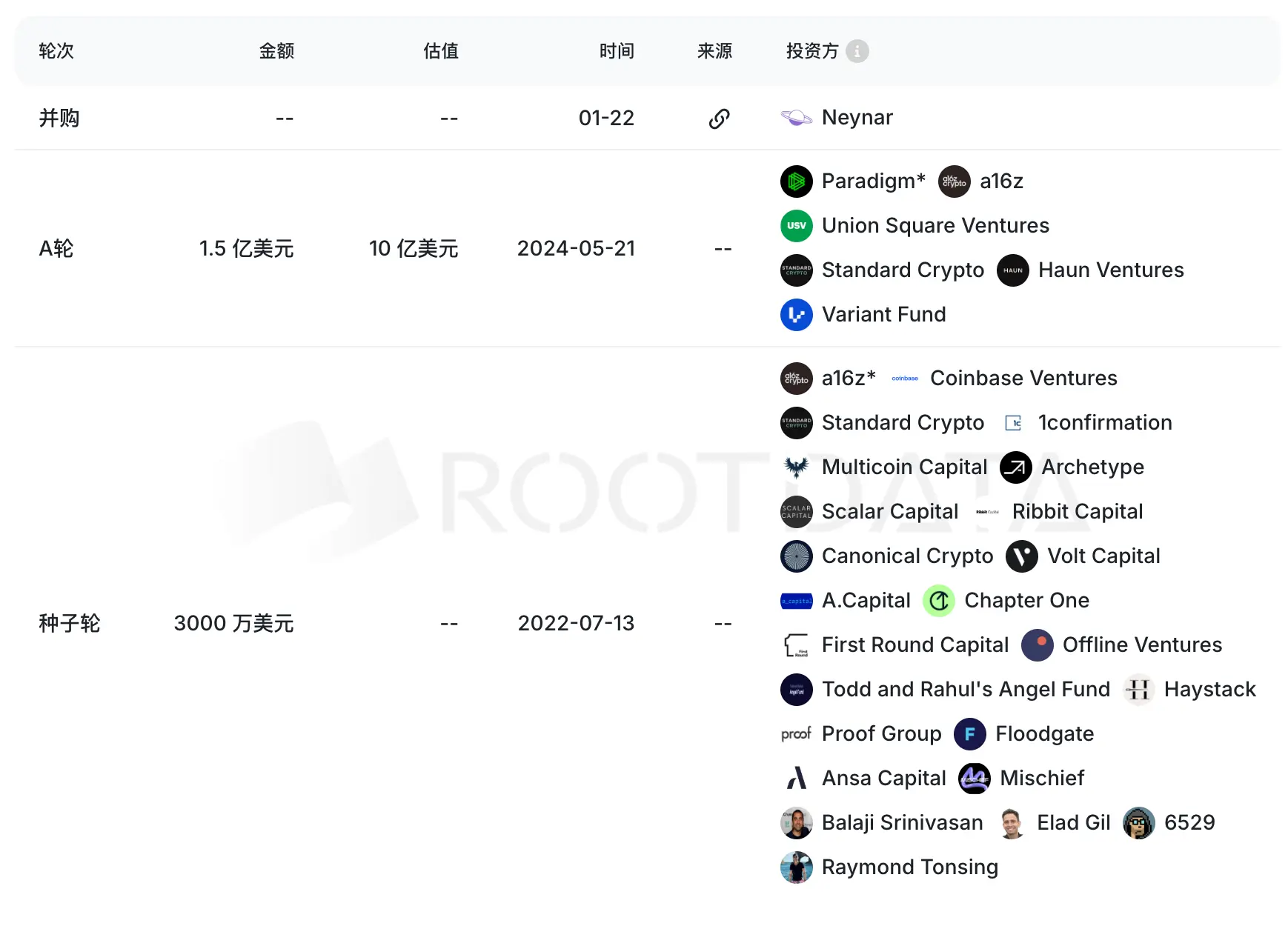 Neynar 自 2021 年起为 Farcaster 提供基础设施服务,目前拥有超过 1,000 家客户,Farcaster 生态内几乎所有主要应用程序都依赖 Neynar 运作。据 RootData 数据,2024 年 5 月,Neynar 完成 1,100 万美元 A 轮融资,参投方 Union Square Ventures 当时便指出,Farcaster 生态系统中的绝大多数服务都仰赖 Neynar 的技术支撑。