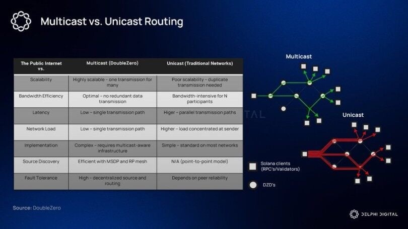 DoubleZero 还支持组播,在网络内部复制数据并同时传递给所有验证者。