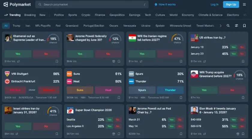 同时它的产品形态,本质上是“热点信息流”:你仔细看它的界面,它不像一个交易终端,更像是一个“把世界热点做成可交易内容的列表页”。