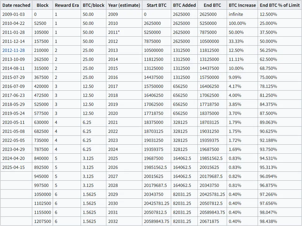 比特币的第四次区块奖励减半发生在 2024 年 4 月 20 日,对应区块高度 840,000,区块奖励从 6.25 BTC 降至 3.125 BTC ,这一过程完全遵循比特币协议中预先设定的发行机制,每 210,000 个区块 自动触发一次减半。
