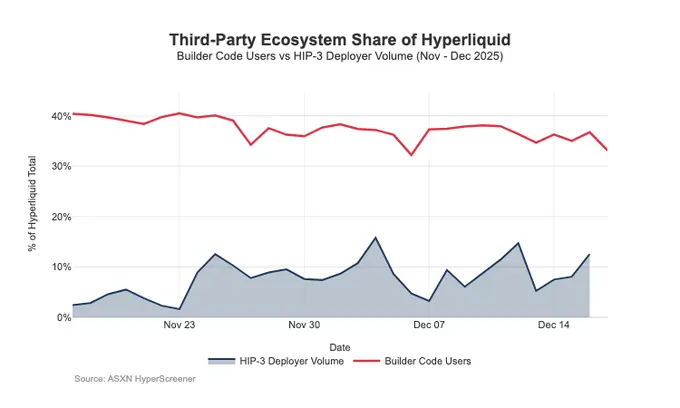 Hyperliquid 早期明显向交易场所原型倾斜。通过拆分分销层(Builder Codes)与产品创建层(HIP-3),它加速了生态扩张与市场覆盖;代价是,这套架构也可能把经济性向外推:一旦第三方前端决定综合价格、并能跨场所路由,Hyperliquid 就有被压成薄利批发执行轨道的风险。