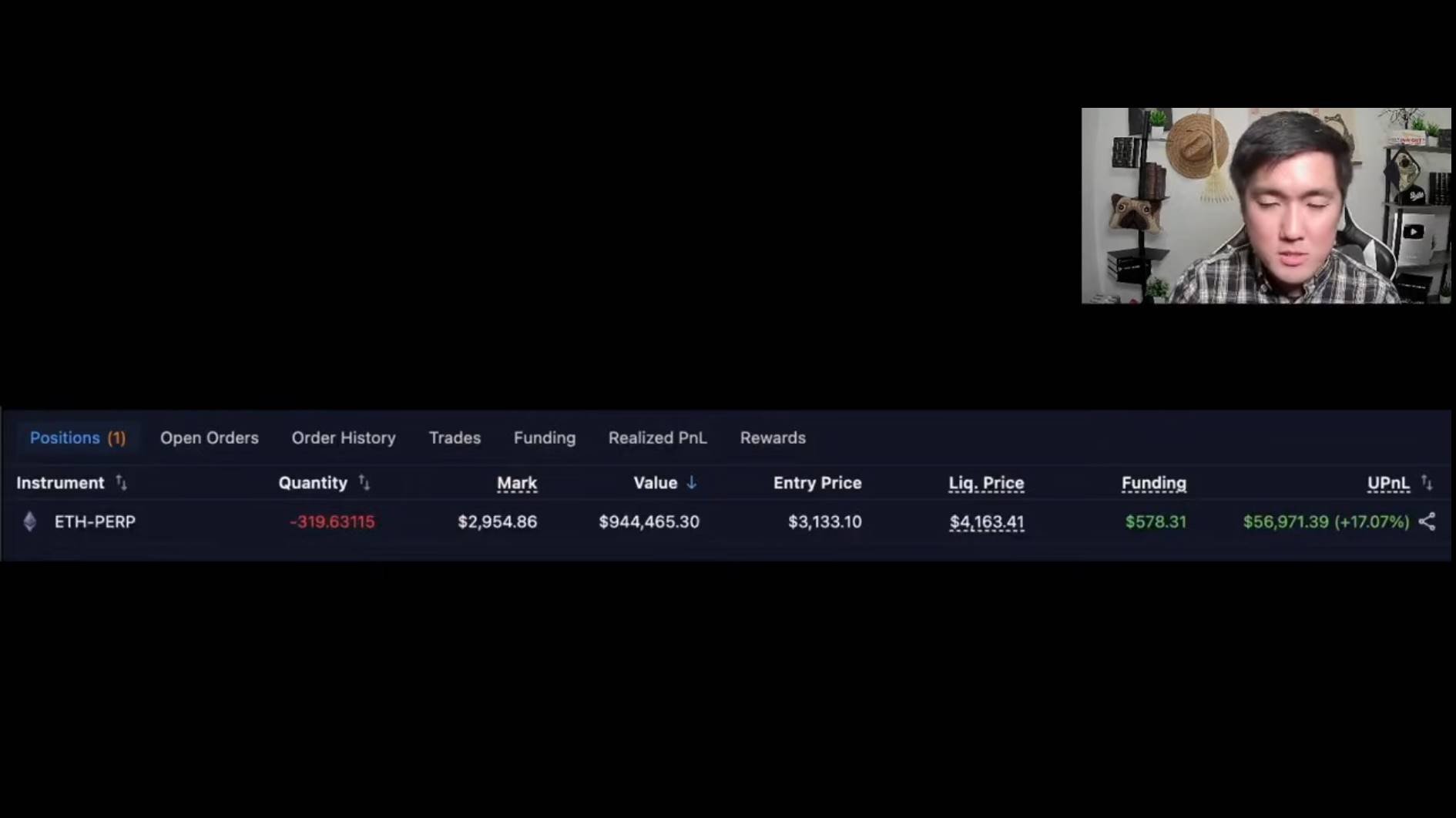 在过去的两个月里,我对市场一直持非常悲观的看法。我通过做空 ETH 和山寨表达了我的观点,并且已经重返了交易场。大约十天前,我重新建立了我的 ETH 空头仓位。几周前,当 ETH 价格跌至 2,650 美元左右时,我曾平仓过一次,但价格出现反弹后我再次做空