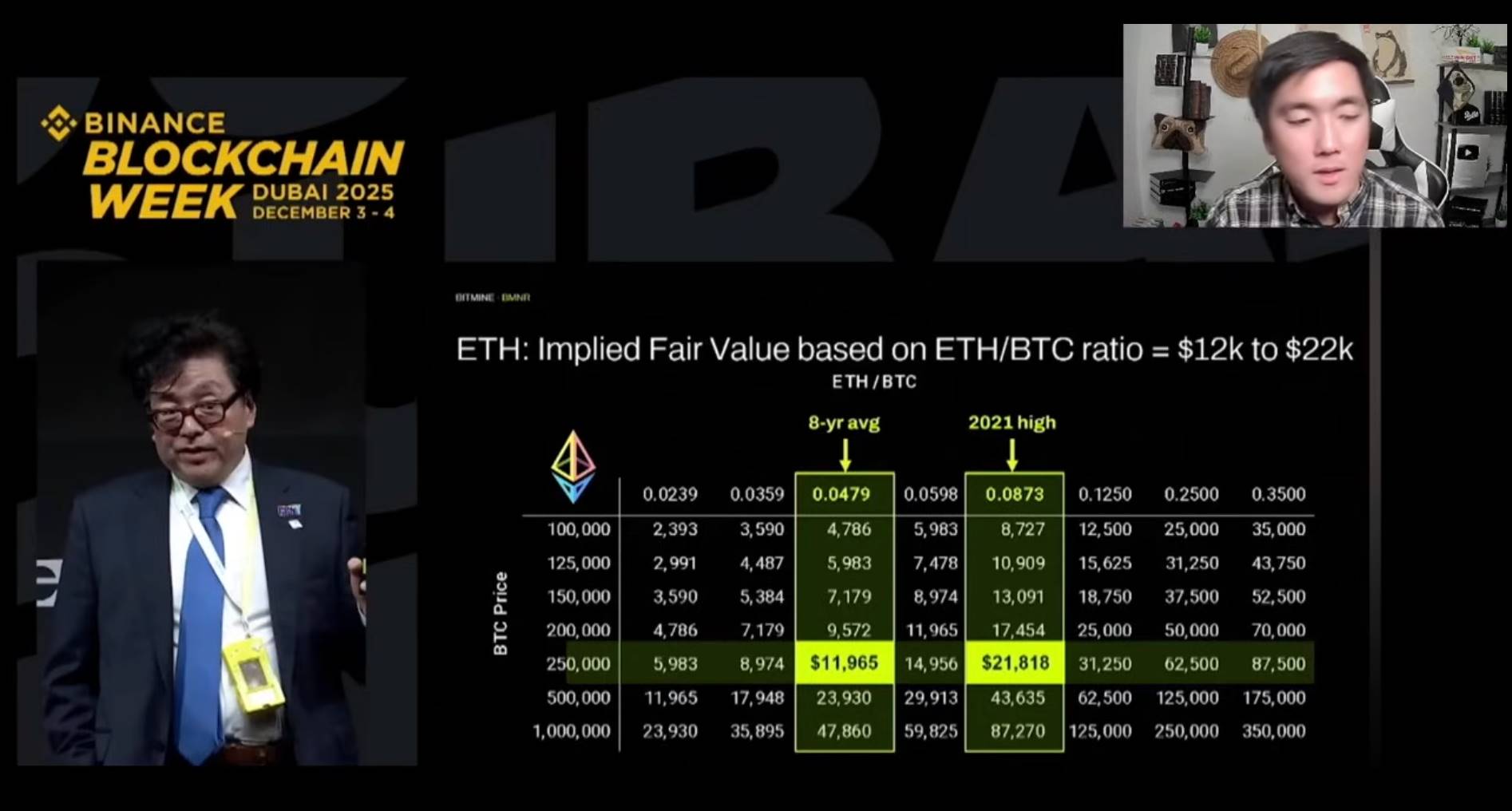 最近,Tom Lee 每周投入约 3 亿美元购买 ETH,这在当前市场环境中显得尤为惊人。他在币安区块链周公开表示,ETH 的价格已经触底,并且他正在加大购买力度。他的原话是:“我们认为 ETH 已经触底,所以我们正在购买更多。”为了精准把握买入时机,他们还聘请了 Tom Demar——一位收费昂贵但能力突出的顾问。Tom Lee 预测 ETH 的价格可能涨到 22,000 美元左右,并给出了一个公允价值区间:12,000 至 22,000 美元。不过,我个人认为这个预测可能存在错误,实际公允价值可能是 1,200 至 2,200 美元。