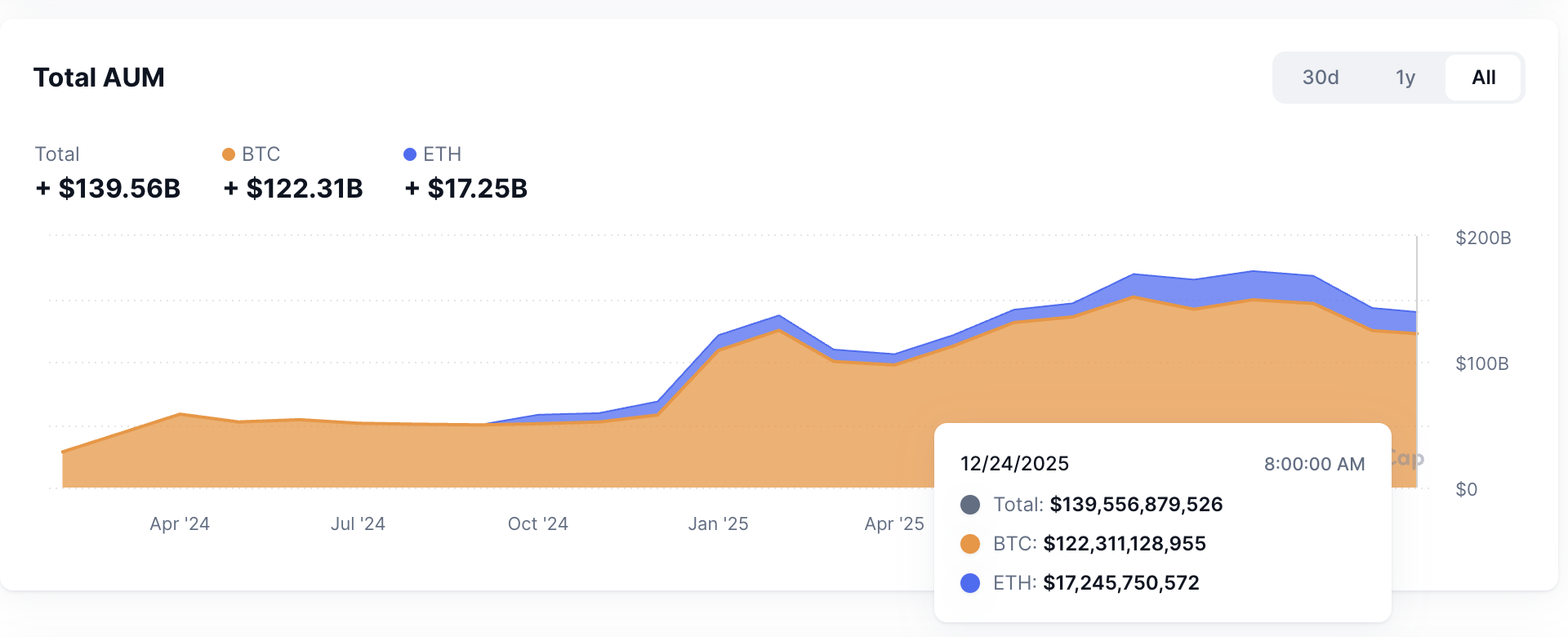 然而,2024年至2025年,这一长期存在的市场结构发生了根本性转折,具体ETF AUM数据如图所示。随着美国现货比特币 ETF 的相继获批并成功运行,加密资产首次获得了被大规模机构资本系统性配置的合规通道。与此前通过信托、期货或链上托管等“次优路径”不同,ETF 以其标准化、透明化和合规化的结构,显著降低了机构进入加密市场的操作和合规成本。进入2025年,机构资金不再只是周期性地“试水”加密资产,而是通过 ETF、受监管托管方案以及资产管理产品持续吸纳头寸,逐步演变为市场中的边际买家。这一变化的关键不在于资金规模本身,而在于资金属性的转变:市场新增需求的来源,从情绪驱动的散户,转向以资产配置和风险预算为核心逻辑的机构投资者。当边际买家发生变化,市场的定价机制也随之重塑。机构资金的首要特征,是更低的交易频率与更长的持仓周期。与散户基于短期价格波动和舆论信号频繁进出的行为不同,养老金、主权财富基金、家族办公室以及大型对冲基金的决策通常建立在中长期投资组合绩效之上,其配置过程需要经过投资委员会讨论、风控审核以及合规评估。这种决策机制天然抑制了冲动交易,也使得仓位调整更多表现为渐进式再平衡,而非情绪化的追涨杀跌。在机构资金占比持续提升的背景下,市场成交结构中高频短线交易的权重下降,价格走势开始更多反映资本配置方向而非即时情绪变化。这一变化直接体现在波动率结构上:尽管价格仍会随宏观或系统性事件发生调整,但短期内由情绪引发的极端振幅明显收敛,尤其是在比特币和以太坊等流动性最深的核心资产上表现得尤为突出。市场整体呈现出一种更接近传统资产的“静态秩序感”,价格运动不再完全依赖叙事跳跃,而是逐步回归到资本约束之下。