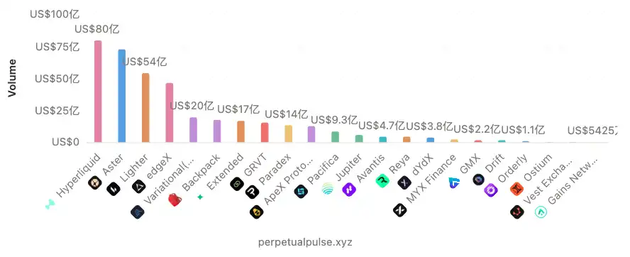 从 Hyperliquid、Aster、再到最近 TGE 的 Lighter,这个周期里的每一个发币的 Perp DEX 在空投时都热闹的和过节一样。Lighter 结束之后,第二梯队的 Perp DEX 数据量也开始有了明显的增长。根据perpetualpulse的数据显示,目前未发币的 Perp DEX 里交易量排名靠前的有 edgeX、Variational、Extended、GRVT、Paradex 这几个。