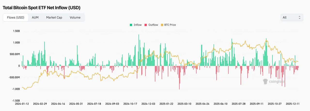图8. BTC 现货ETF净流入流出(来自coinglass)