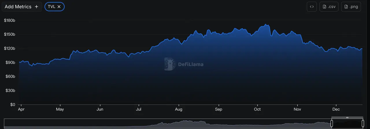得益于市场稳定后投资者逐步回归,12月稳定币供应势趋于稳定,30天增长约1.72%,结束11月的下降势头,链上TVL逐步稳定并小幅回升,BTC和ETH ETF净流出放缓,并录得持续小幅流入,表明ETF资金流向由撤离转为再配置。