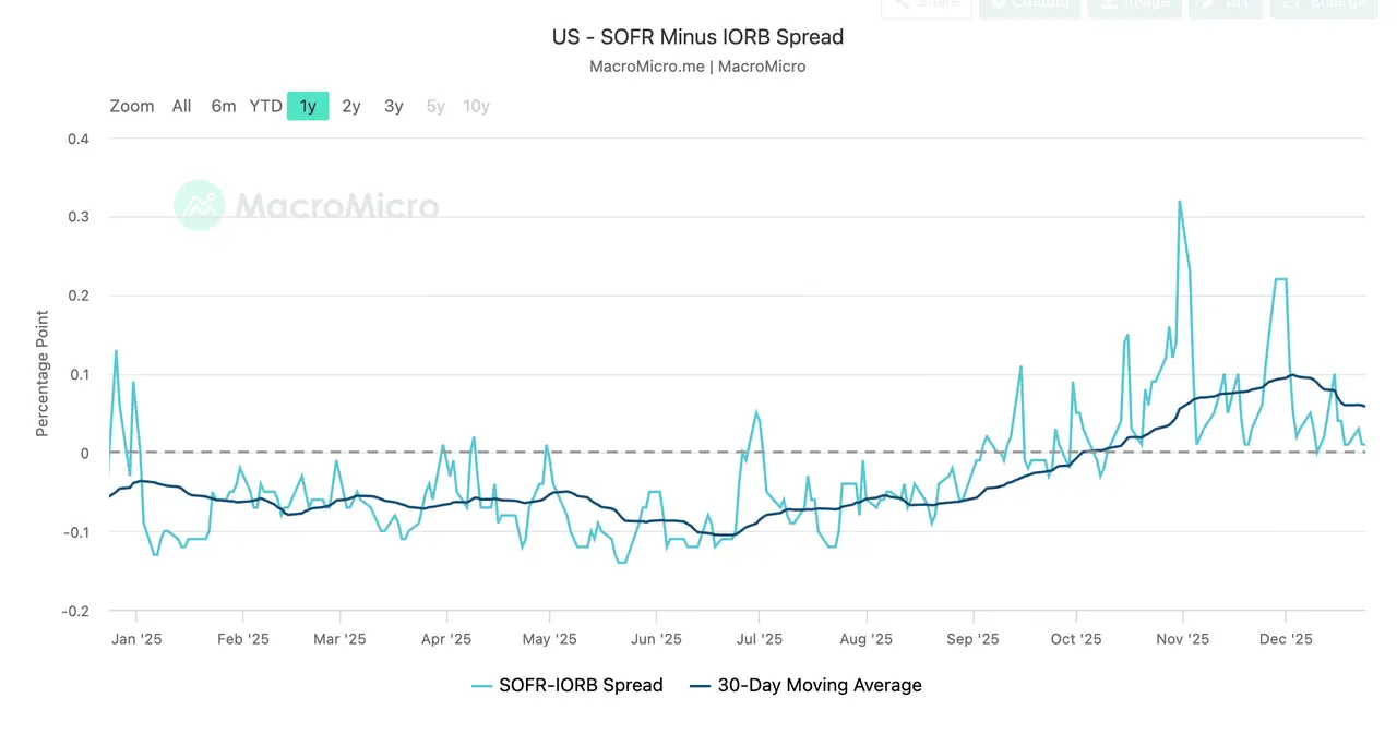 图7. SOFR - IORB 利差(来自MacroMicro)