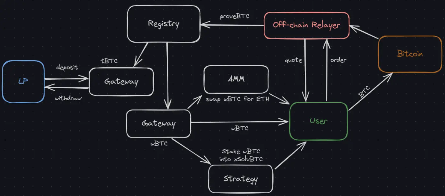 账户与钱包层:支持 MetaMask、Rabby 等 EVM 钱包,也支持 Xverse、Unisat、Phantom 等比特币钱包;支持 ERC-4337 与 EIP-7702,以及社交登录。