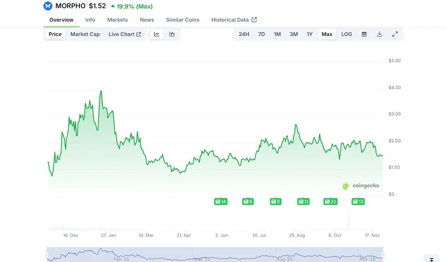 $MORPHO 在规模、机构采用和 TVL 引力方面占据主导地位 ——但仍然受到 FDV 扩张和解锁风险的结构性负担 。