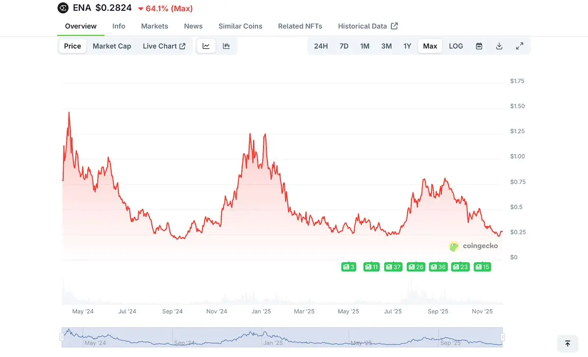 Ethena 的交易特点是速度快、流动性强,并且收益率周期性波动较大。