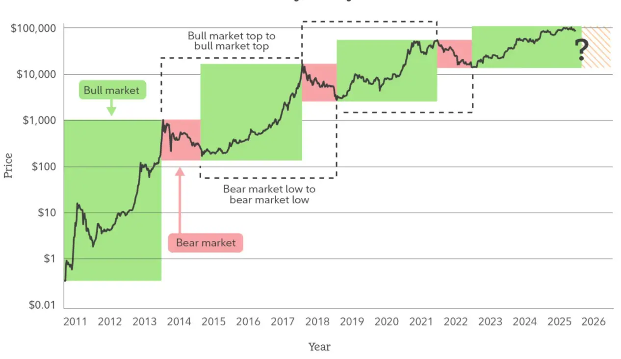 火币成长学院|2026 年加密市场深度展望:从周期博弈到范式切换,下一个十年加密市场将如何定义?一、周期正在失效:我们为何不再用“牛熊”理解 2026 年的加密市场 在过去相当长一段时间里,加密市场几乎被“四年牛熊周期”这一单一叙事所统治。减半时间点、流动性拐点、情绪泡沫与价格崩塌,被反复验证为